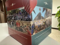 Ma non finisce qua. Sempre in CdA qualcuno ha suggerito che comunque sarebbe stato bello fare avere a tutti i dipendenti un dono nel giorno dei nostri consueti auguri di Natale. È quindi non poteva esserci dono migliore del panettone. Ma come fare a non togliere i soldi da donare? Quando il desiderio è buono la Provvidenza aiuta. La facciamo breve, abbiamo spiegato la nostra scelta al famosissimo maestro pasticcere Luigi Biasetto e a sua moglie Sandra che si sono resi subito disponibili ad aiutarci e assieme all’imprenditore Andrea Muzzi dell’omonima Antica Pasticceria Muzzi abbiamo dato vita al “Panettone della Carità e della Speranza”. Bisognava però dare un vestito al panettone con un messaggio che ci aiutasse a comunicare la nostra scelta, ma una semplice telefonata ad un altro imprenditore ha risolto la questione: Francesco Bernardi della Nuova Grafotecnica ha risposto di sì senza esitazione. E così ad un costo contenutissimo abbiamo potuto donare a tutti i nostri dipendenti per Natale il Panettone. Quest’anno possiamo proprio dire che il momento di auguri in Giotto è stato proprio speciale, profondo e bello.